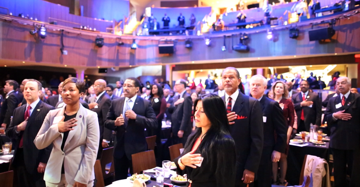 Love also spoke of her own trailblazing status as the first black Republican woman elected to Congress. Recalling her difficult life as a child, her mother “pointed to a line of people waiting for big blocks of cheese, she told me ‘not to take my scraped knees and your dad’s callous hands for granted. We are working so hard for you not to be somebody but to do something.’ I am here because of that lady,” Love concluded.