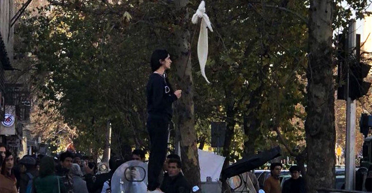 As American women prepare to put on their pink hats for a second time to protest President Donald Trump on the anniversary of his inauguration, women in Iran are taking off their hijabs, protesting an oppressive theocratic regime.