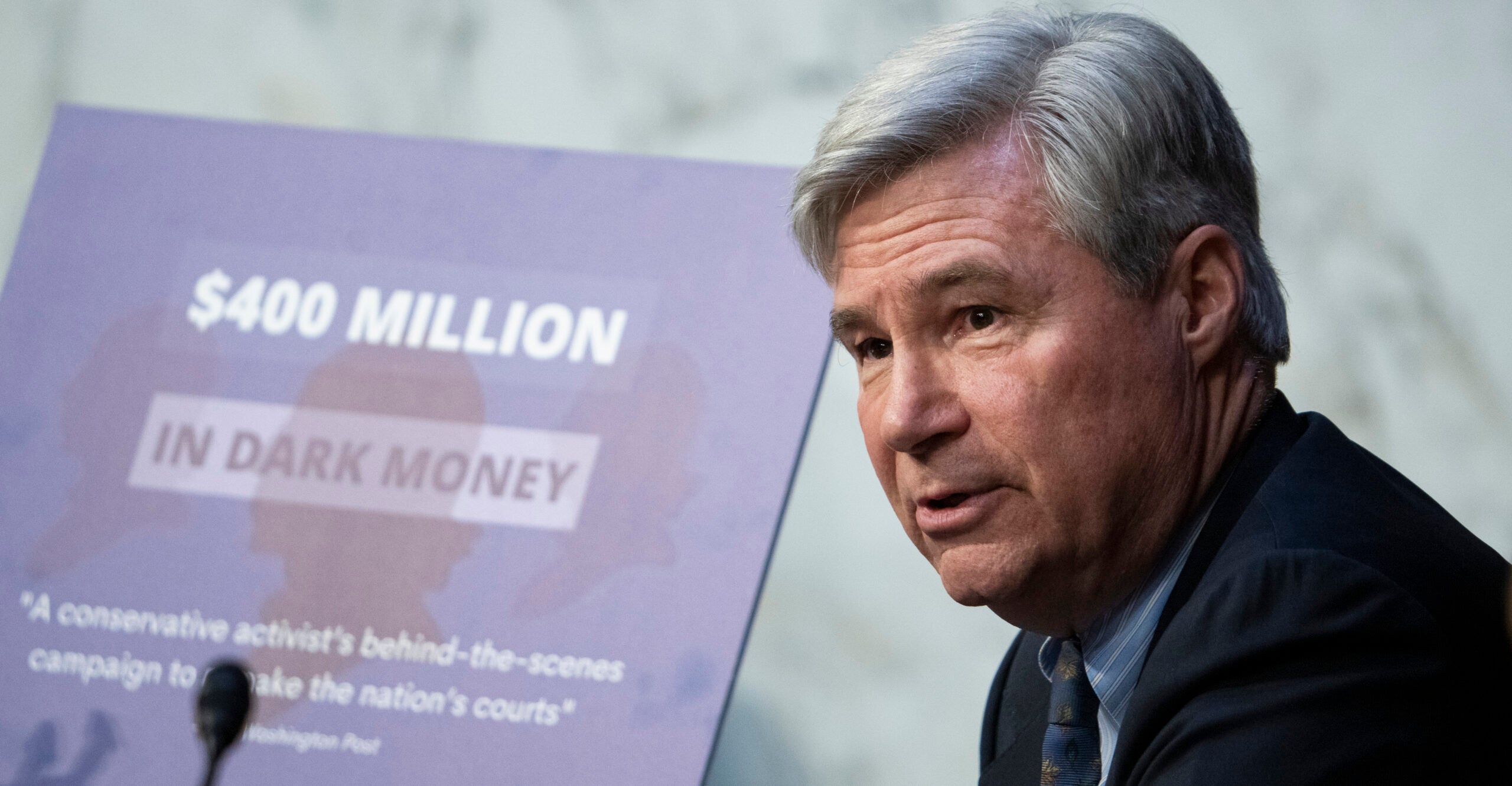 The Rhode Island Democrat, first elected in 2006, has made “dark money” a central point of Senate floor speeches and often uses up his entire five-minute question period to make related speeches during hearings of the Senate’s Judiciary and Finance committees.