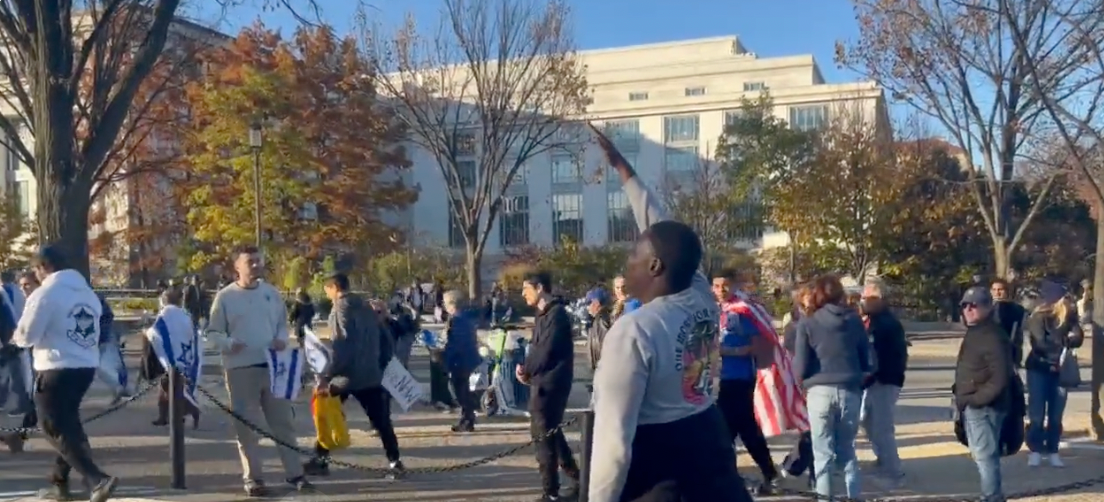 A video captured by Dominick Buehler, a member of the Young Leaders Program in the Oversight Project at The Heritage Foundation, shows a horrific scene from Tuesday’s March for Israel: