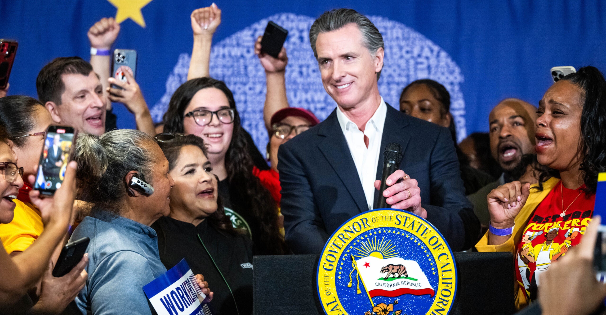 Newsom said: “That’s a romanticized version of a world that doesn’t exist. We have the opportunity to reward that contribution, reward that sacrifice and stabilize an industry.”