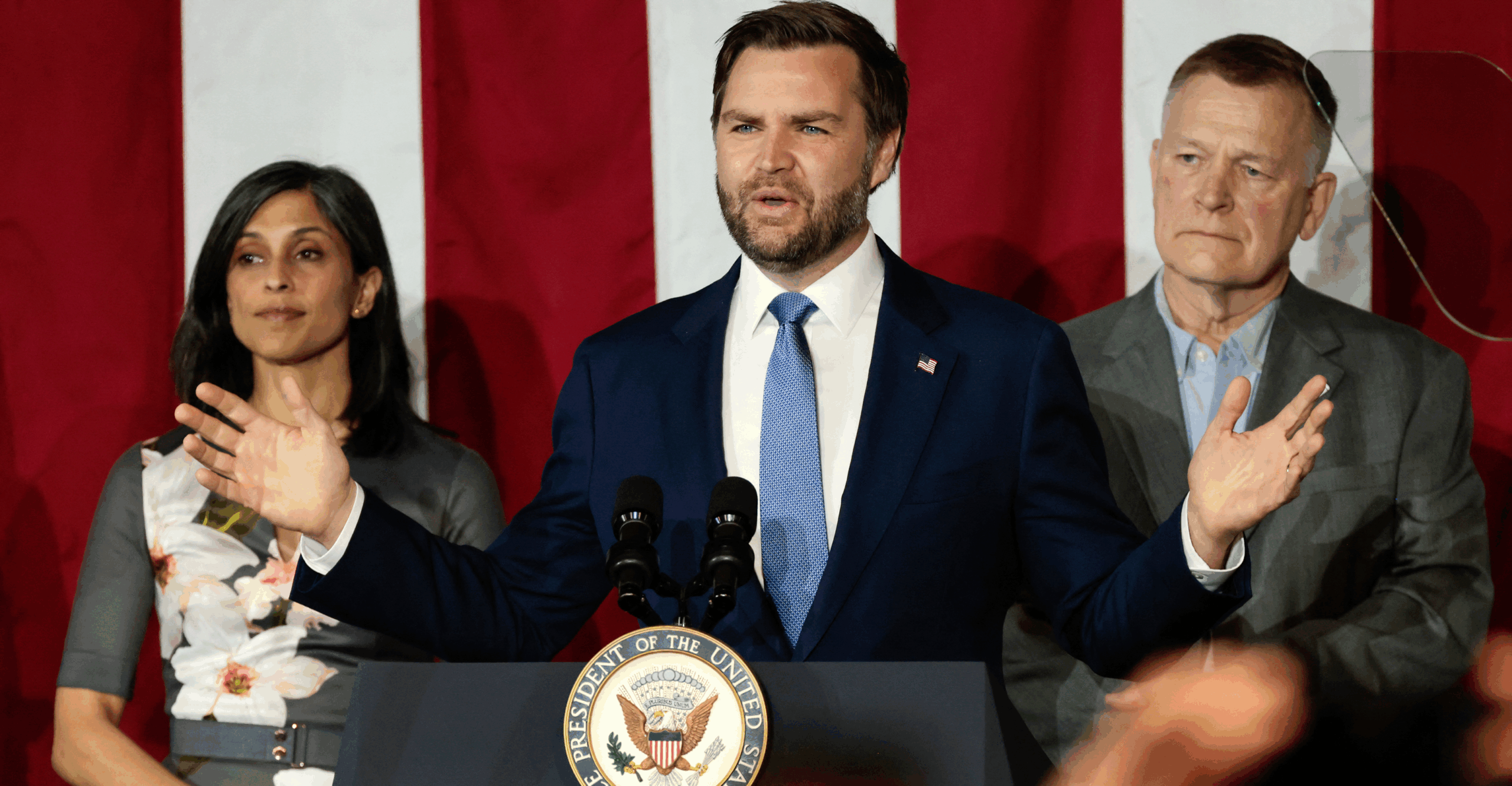 “And I feel invigorated that we finally have a president who is turning his back on 40 years of failed policy in Washington, D.C., and is getting back to investing in, and fighting for, the American worker. God bless you guys,” Vance said.