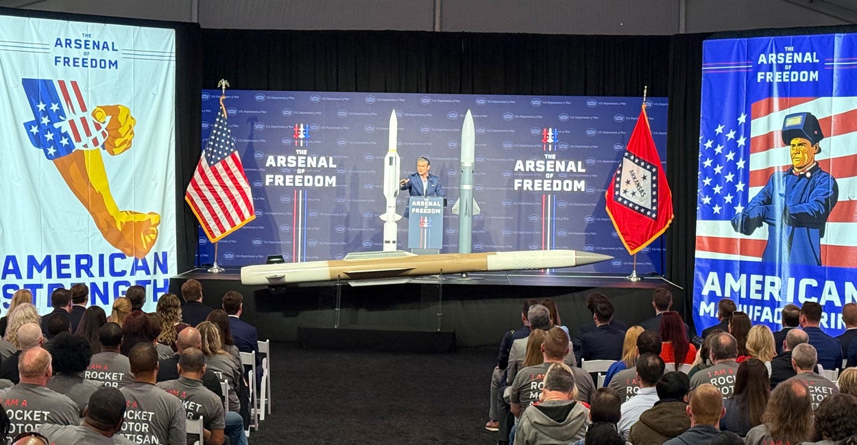 Hegseth’s trip to southern Arkansas marks the eighth and final stop on the secretary’s Arsenal of Freedom Tour aimed at bolstering America’s military industrial base.